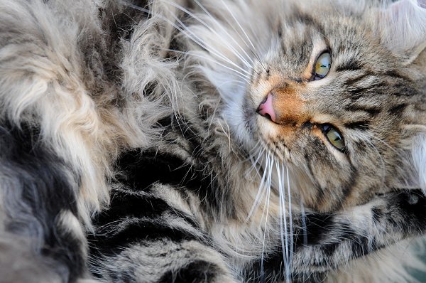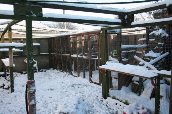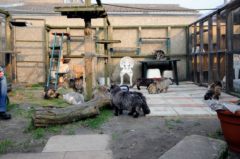 Cats love the garden and they are feeding on raw rabbit in this shot which is their favourite food. This photo was taken by Alex Svirskey © from Israel in March 2011 on his visit to us with Ran to collect two babies from us. Alex already has a cat bred by us named Bergelmir who was the first NFC in Israel.