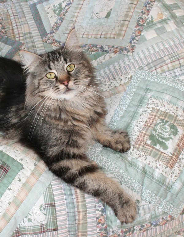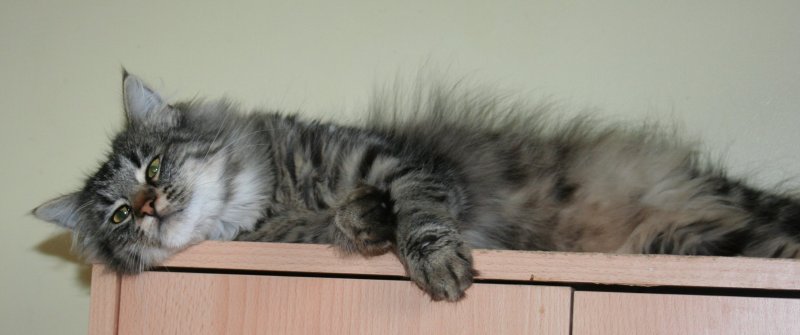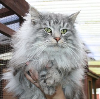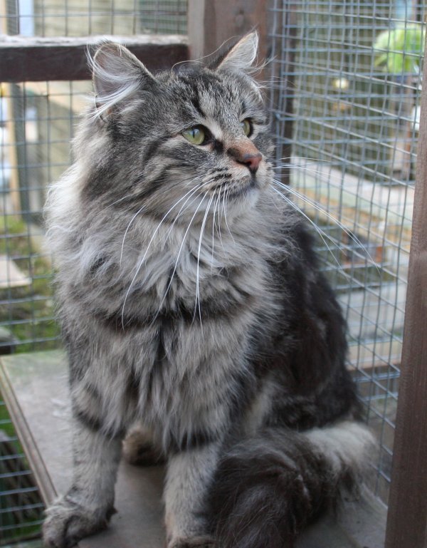 Maysula Ketilla was bred by Doreen Dobson of Maysula cattery UK. We call her KT and she is a full sib mating on Tigra and Odins bloodlines. The reason we wanted this was to concentrate on preserving the strong type and bone structure of both parents and this has been achieved. KT is a lovely girl very strong in type and is a wonderful mum to her babies. Very protective, more than the average I would say and she talks to her babies all the time :-) She certainly nurses and cares for them until the day they leave - so much like her grandmother its uncanny. We are extremely pleased with her and Thank you Doreen for allowing us to have the lines concentrated and of course KT too!