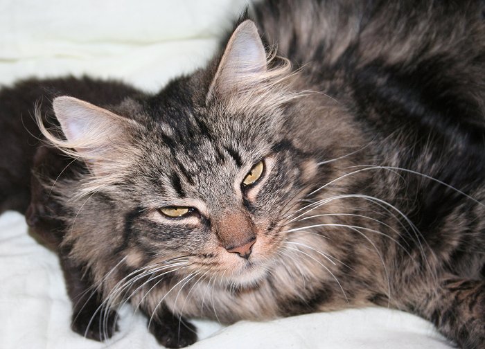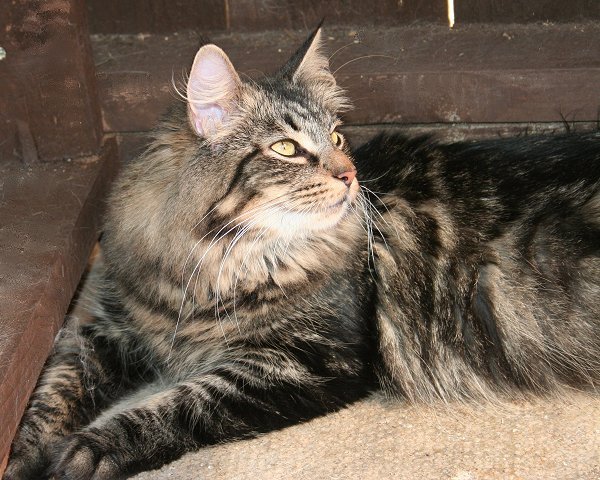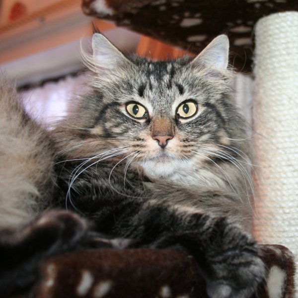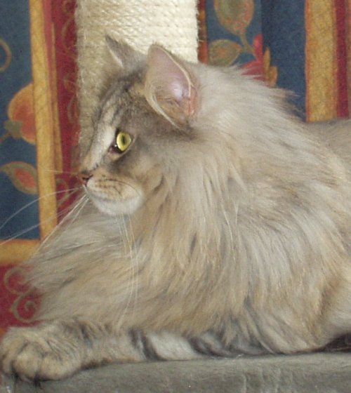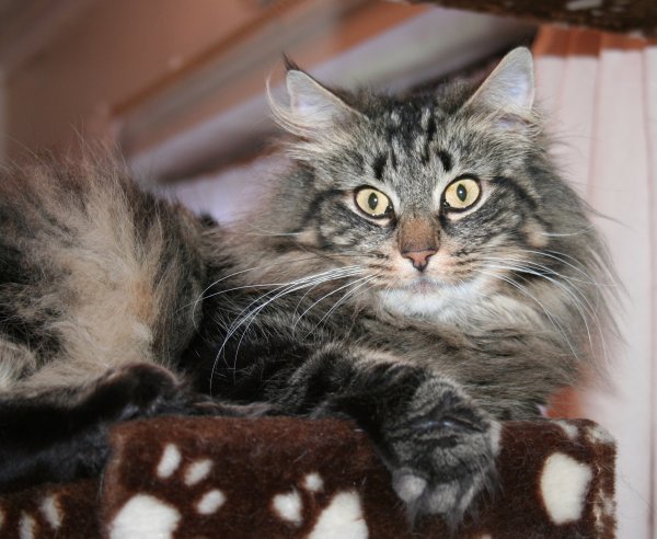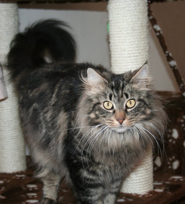 Fife Champion (N) Selteteigen's Magnhildr Date of Birth: 8th August 2004 -- Black Classic Tabby Magnhildr is from Algarheim in Norway. A 5th generation forest cat with good old pedigree lines , a wonderful temperament, best coat quality and an amazing tail! Magnhildr also has Pan's Truls (who set the standard of the breed in Norway all those years ago) in her 7th generation making her a very special cat indeed. This can be viewed in her extended pedigree ( link below) We can never thank her Ina breeder enough for this very special girl. Magnhildr has stunning babies with the best coat quality I have seen . Thank you so much Ina for this wonderful female - her quality of breeding is not found often! Previous Litters ( coming soon)